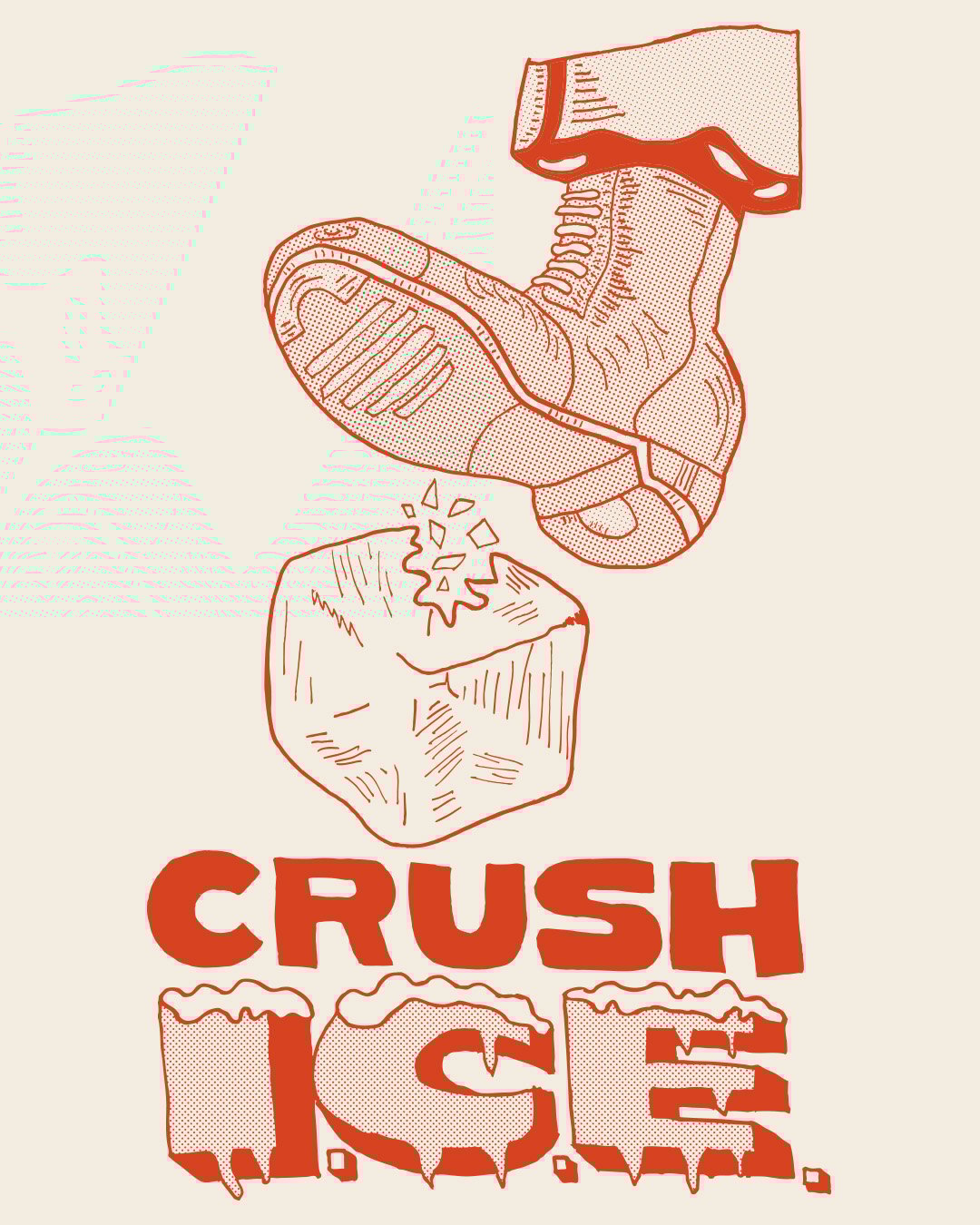 Cream Tee w/ Orange Print